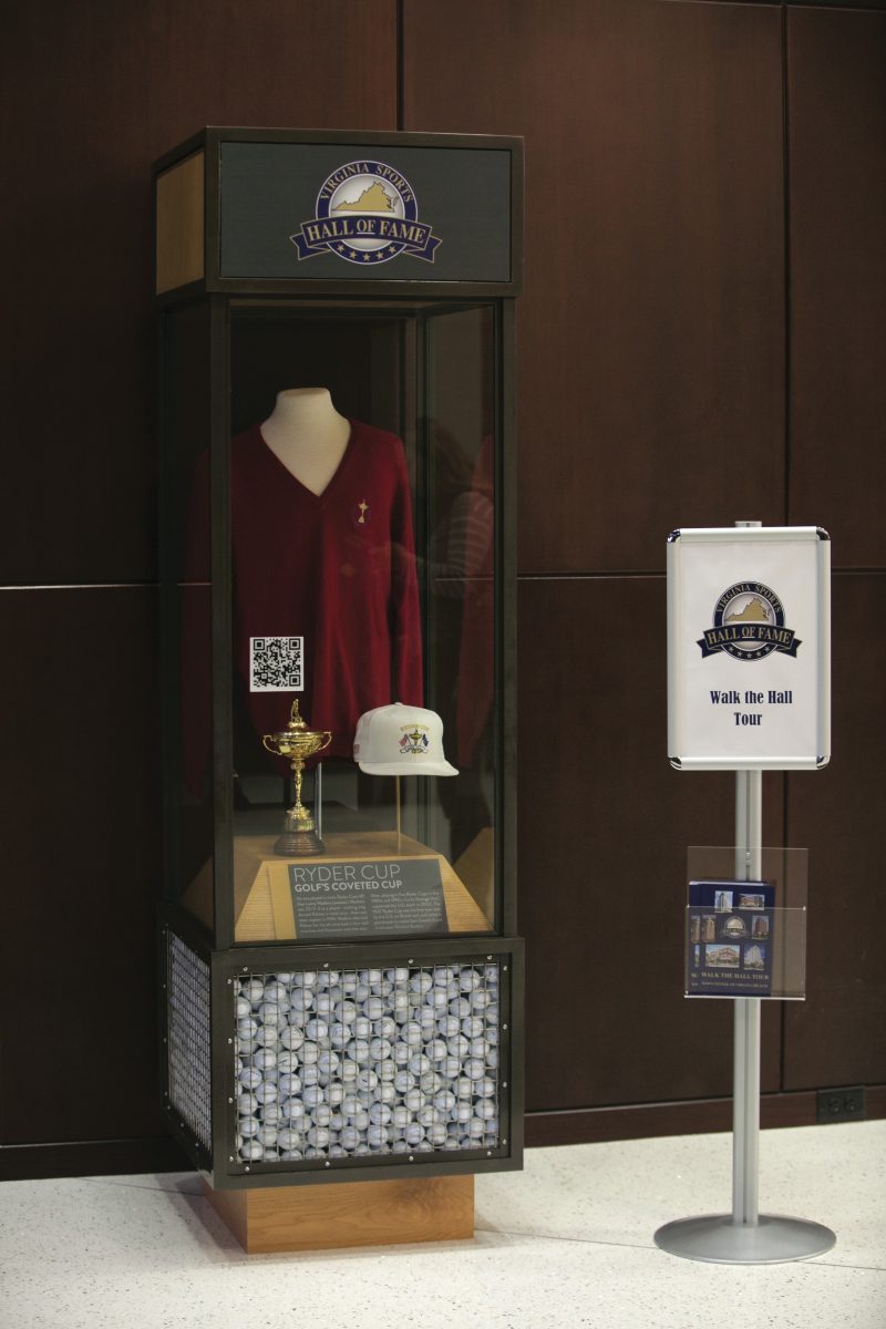Alumni pride is just one of the draws for Town Center visitors—from die-hard sports fans to passersby—to these exhibits, which are open to the public during normal business hours and on Saturday mornings. Other stops on the self-guided tour include the “Hall of Honor” featuring more than more 300 enshrined athletes and other significant sports figures with Virginia connections, “Coaching Legends,” “Golf Masters,” “National Hall of Famers” and “Year in Sports,” a vibrant display of sports photography prominently just outside the public elevator in the lobby of the Westin Hotel.