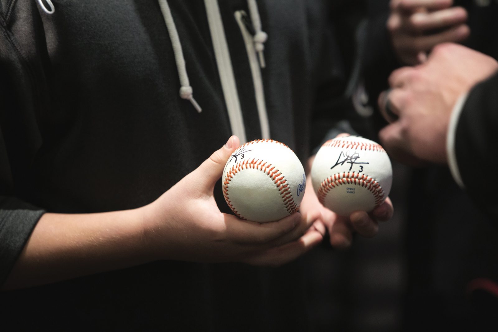 Baseballs that a fan brought to the Hoos on First event, signed by Chris Taylor and