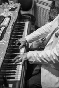 His training? “I bought a baby grand in 1996 when I was 47 and basically taught myself how to play. I never really had any lessons, although Bruce Hornsby did spend a couple hours with me in his home in Williamsburg, giving me some playing tips.”