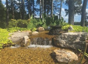 When considering small pets and children, waterfalls and decorative fountains are the most secure option, but even ponds can be designed with safety in mind. “If we know they’ve got a pet that likes water, we’ll make the pond more interactive by building shallower ledges so the pet can jump out,” Miller says.