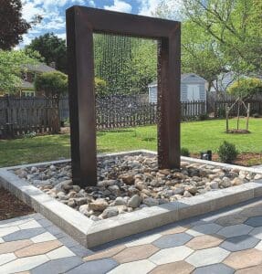 “You’re not going to be outside 100 percent of the time, but when you walk in the door and set your keys down, I want to make sure the water feature is positioned within that viewshed,” he says, explaining that the sight of flowing water can be just as appealing as the sound.