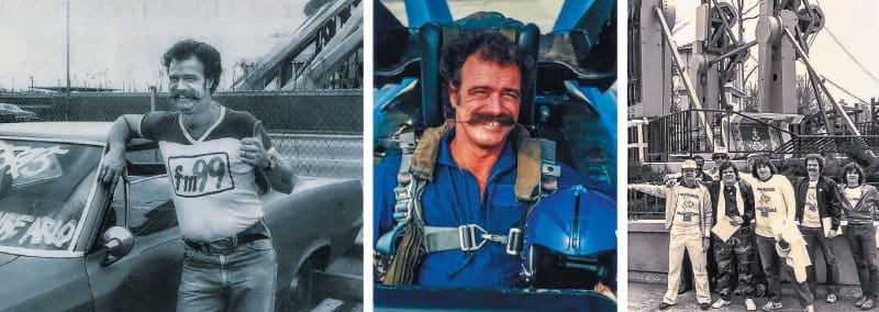 THUMBS UP Left to right: Mike Arlo through the years at Norfolk Scope, with the Blue Angels, at the opening of Da Vinci’s Cradle at Busch Gardens, and photo at top, recently at the 106.9 The Fox and FM 99 studios.