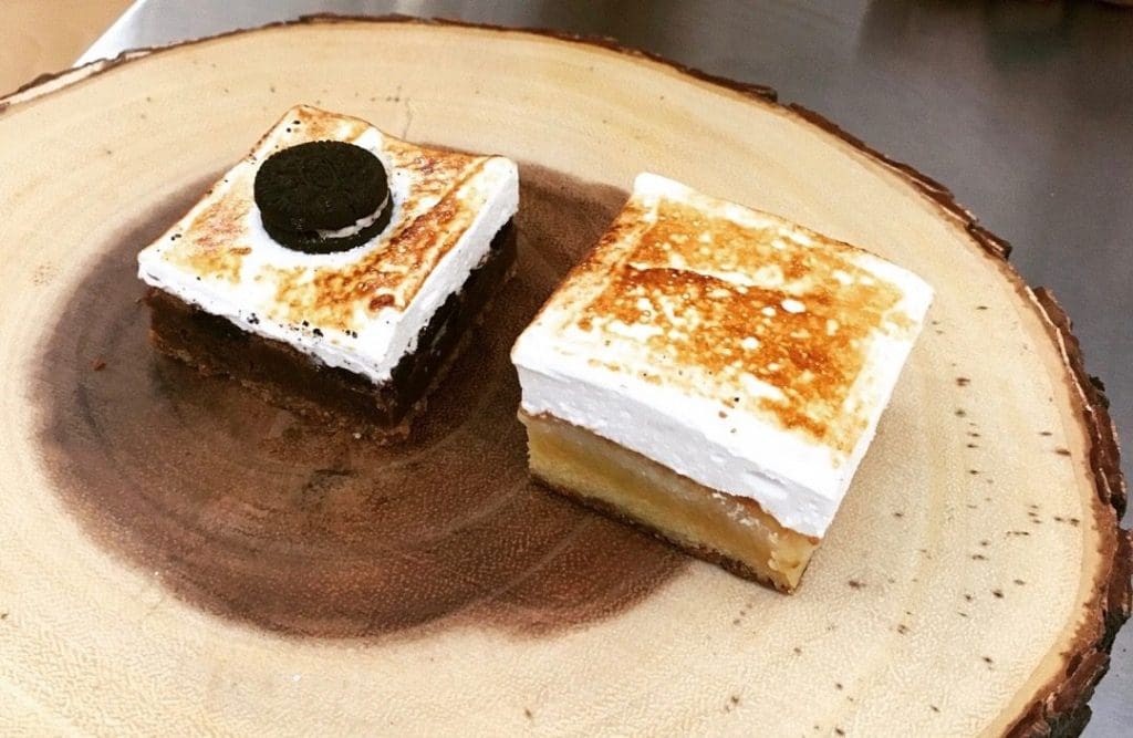 The solution resulted in something even better than regular s’mores. Dinio created flavors based on desserts he loved as a kid and then fires up a miniature blow torch to complete the ultimate s’mores experience. Their Super Six Menu consists of Espresso Yo’Self, Amazey Strawberry, PB OMG!, S’Moreos, Golden S’Mores Amore Blondie and The Original S’Mores Amore Brownie that started it all. Plus, there’s always a “Whoa!” Flavor of the Month, like The Great Golden Pumpkin for fall or the Ooh Bae Baybee (ube or purple yam, butter and vanilla with organic coconut). Since opening, Dinio has sold over 7,000 S’mores Amore brownies and blondies and says the response has been phenomenal. “People love the show, the smell of the burnt marshmallow and indulging in a childhood classic without having to build a campfire.”