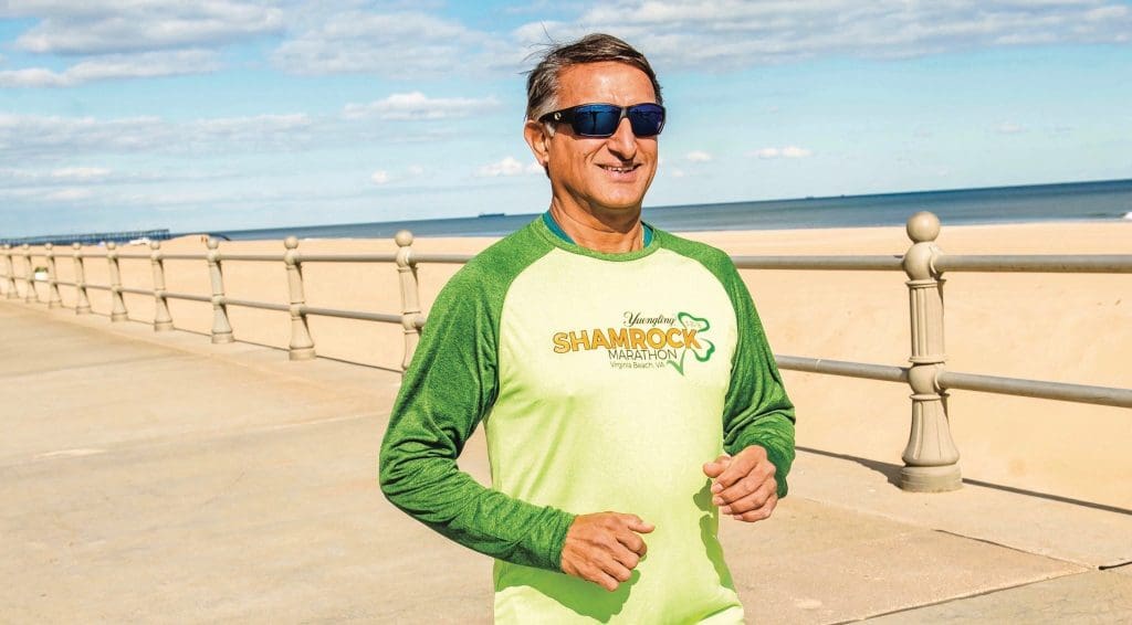 In 1995, Arora suffered a spinal cord injury as a result of a car accident. To improve his condition, he began running. After initially running and walking portions of The Shamrock Marathon 10 years ago, he was determined to keep up with the races. He’s now competed in every annual Shamrock Marathon since 2007 and has joined Marathon Maniacs, a group that requires runners to participate in marathons every few months. He uses marathons as a way to practice for ultramarathons that sometimes reach distances up to 100 miles.