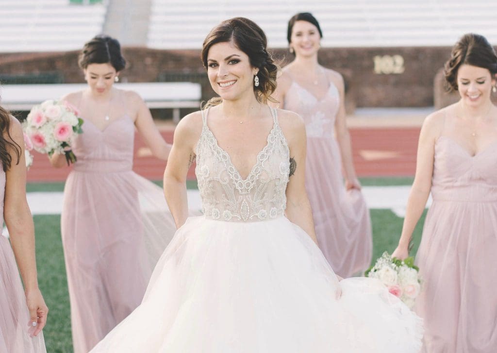 Nostalgic Fixtures: The last time the couple stood beneath a chandelier, Shanna said yes to a lifetime with Cody. So, reciting ‘I do’s’ beneath the same sparkling fixture only seemed right. The custom-built archway stood proudly on Zable Stadium’s 50-yard line and marked the first-ever stadium wedding in the history of William & Mary.